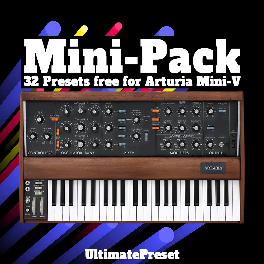 Download the free Arturia Mini-V SoundBank with 32 versatile presets for Tech House, Techno, House, and more. Perfect for producers seeking fresh sounds. Exclusive at Ultimatepreset.com.